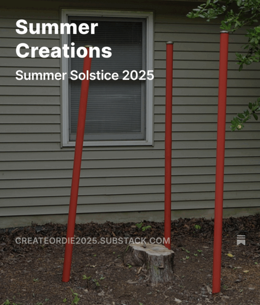 Summer Creations June 20, 2025 — by Harald Leave a Comment Summer Solstice 2025 (on Substack) https://open.substack.com/pub/createordie2025/p/summer-creations?r=3pfgt&utm_campaign=post&utm_medium=web&showWelcomeOnShare=true